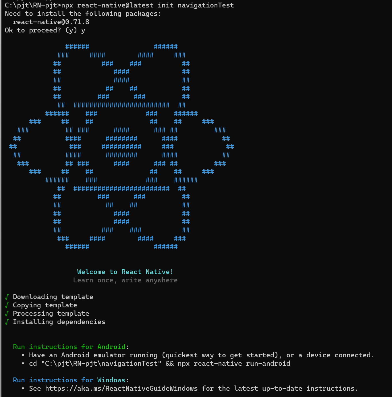 npx react-native@latest init navigationTest