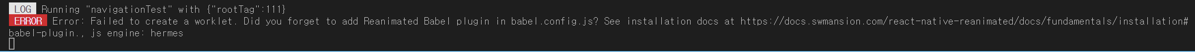 babel.config.js 에 react-native-reanimated/plugin 을 추가해 주어야 합니다.